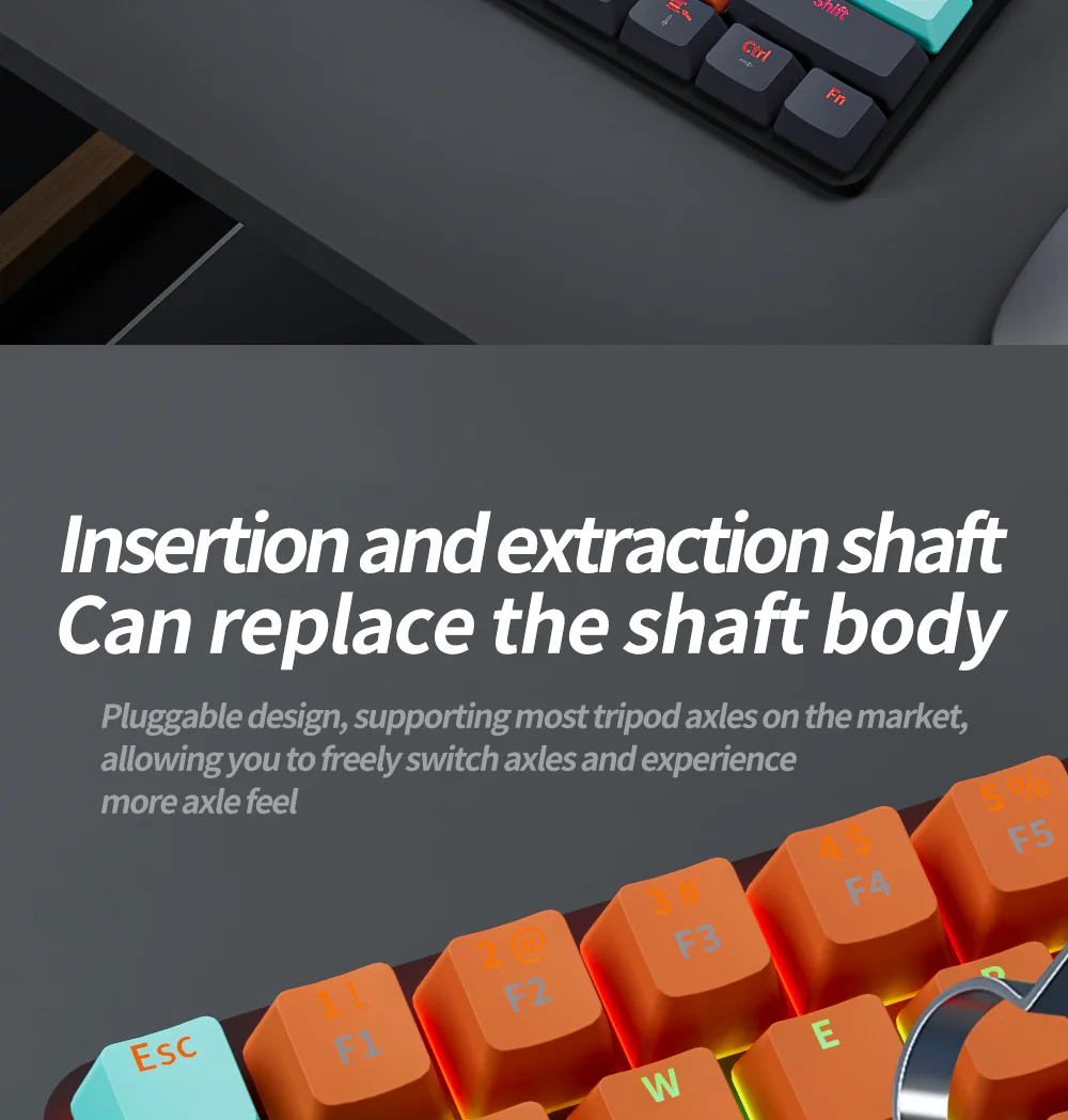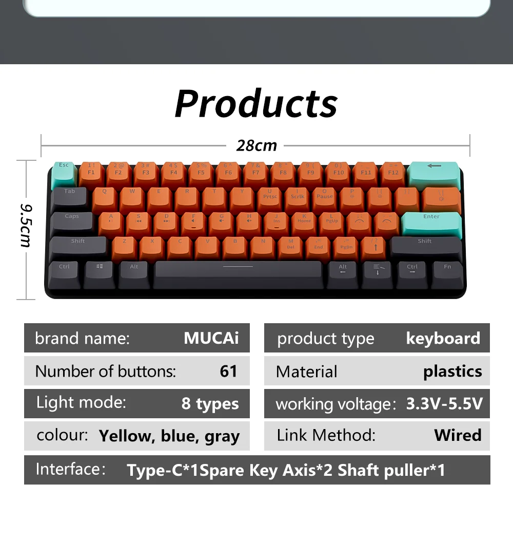 MUCAI-Teclado mecánico RGB de 61 teclas, con cable USB, eje retroiluminado LED, para juegos, Mac, Android, Windows